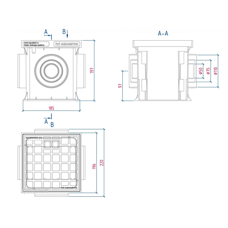 Дождеприемник квадратный без решетки 195x195 мм H197 4200 AQUASTOK