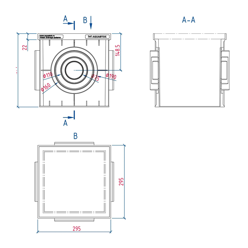 Универсальный дождеприемник 300x300 мм, высота 297 мм. Имеет выходы для подключения труб ØØ 75, 110, 160 мм. В комплекте корзина для сбора мусора и две перегородки-сифон для запирания неприятных запахов внутри системы. Дождеприемники могут устанавливаться друг на друга для укладки водоотводной трубы ниже глубины промерзания. Несколько дождеприемников могут использоваться как самостоятельный дренажный колодец. Подходит для приусадебных участков, садовых и парковых зон (класс нагрузки до B125 — до 12,5 т./м²). Водоприемная решетка (при сборе воды с крыши) или крышка (если используется как дренажный колодец) приобретаются отдельно!