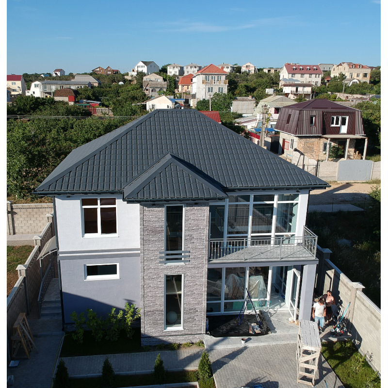 Фасадная панель с текстурой слоистого песчаника и имитацией натуральной каменной кладки из коллекции STEIN от Деке. Панель изготовлена из полипропилена методом литья под давлением, имеет небольшой вес, поэтому не создает дополнительной нагрузки на несущие конструкции. За счет специальной трехступенчатой системы окраски, материал невосприимчив к УФ-лучам и атмосферным осадкам. Конструкция панели усилена ребрами жесткости, что обеспечивает повышенную устойчивость к механическим нагрузкам. Панели легко и надежно скрепляются между собой, монтируются на обрешетку. Монтаж можно производить в любое время года, за исключением сильных морозов (не ниже -15°С)