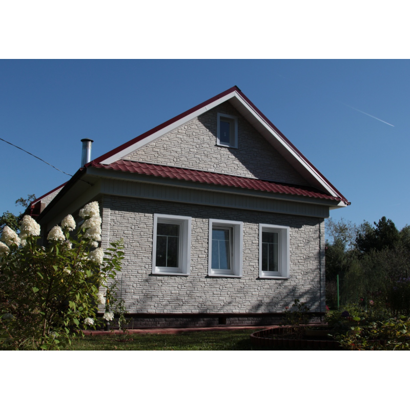 Фасадная панель в фактуре колотого слоистого песчаника с переливающейся текстурой поверхности из коллекции STERN от Деке. Камни разного размера придают панелям максимальное соответствие натуральной каменной кладке. Панель изготовлена из полипропилена методом литья под давлением, имеет небольшой вес, поэтому не создает дополнительной нагрузки на несущие конструкции. За счет специальной трехступенчатой системы окраски, материал невосприимчив к УФ-лучам и атмосферным осадкам. Конструкция панели усилена ребрами жесткости, что обеспечивает повышенную устойчивость к механическим нагрузкам. Панели легко и надежно скрепляются между собой, монтируются на обрешетку. Монтаж можно производить в любое время года, за исключением сильных морозов (не ниже -15°С)