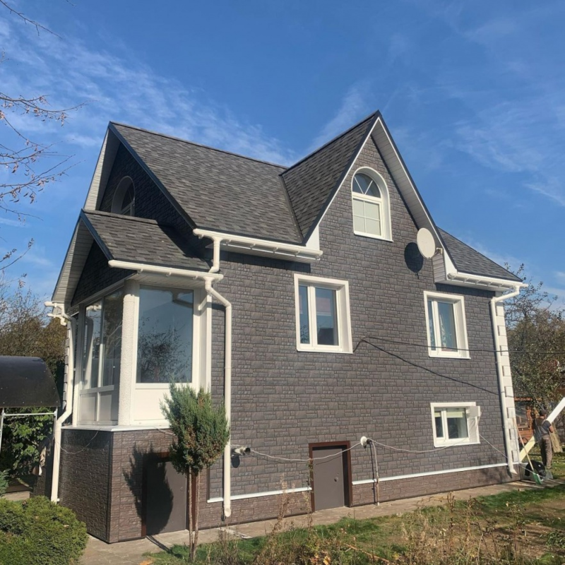 Фасадные панели могут использоваться как для оформления фасада целиком, так и для облицовки фундамента, выделения отдельных деталей.