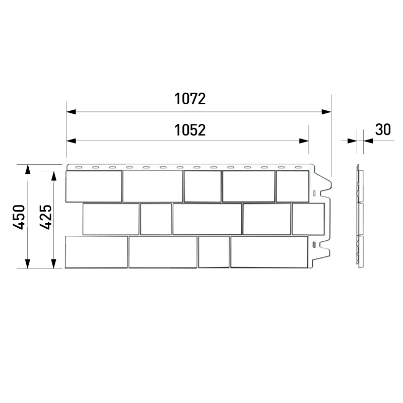 Фасадная панель в фактуре дикого скального тесаного камня из коллекции FELS от Деке. Крупный камень, взятый за основу панели, придаст дому объем. Панель изготовлена из полипропилена методом литья под давлением, имеет небольшой вес, поэтому не создает дополнительной нагрузки на несущие конструкции. За счет специальной трехступенчатой системы окраски, материал невосприимчив к УФ-лучам и атмосферным осадкам. Конструкция панели усилена ребрами жесткости, что обеспечивает повышенную устойчивость к механическим нагрузкам. Панели легко и надежно скрепляются между собой, монтируются на обрешетку. Монтаж можно производить в любое время года, за исключением сильных морозов (не ниже -15°С)