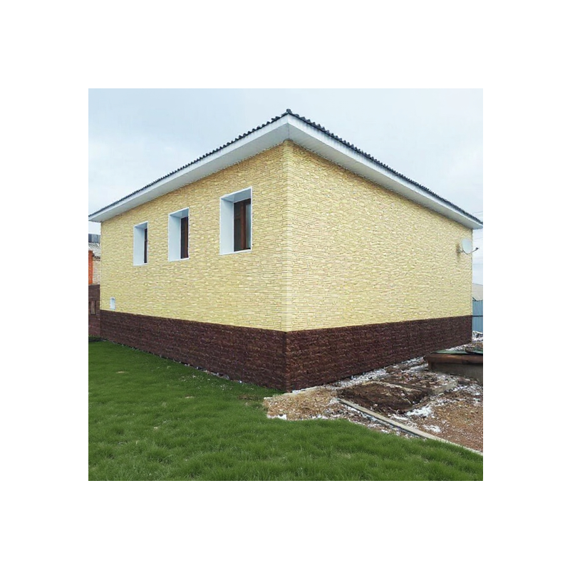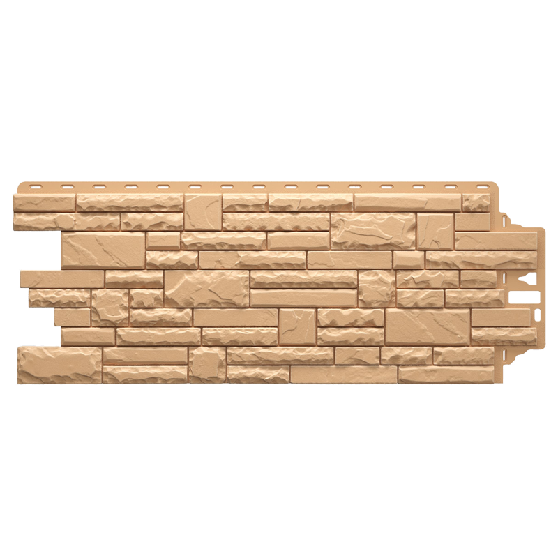 Фасадная панель в фактуре колотого слоистого песчаника с переливающейся текстурой поверхности из коллекции STERN от Деке. Камни разного размера придают панелям максимальное соответствие натуральной каменной кладке. Панель изготовлена из полипропилена методом литья под давлением, имеет небольшой вес, поэтому не создает дополнительной нагрузки на несущие конструкции. За счет специальной трехступенчатой системы окраски, материал невосприимчив к УФ-лучам и атмосферным осадкам. Конструкция панели усилена ребрами жесткости, что обеспечивает повышенную устойчивость к механическим нагрузкам. Панели легко и надежно скрепляются между собой, монтируются на обрешетку. Монтаж можно производить в любое время года, за исключением сильных морозов (не ниже -15°С)