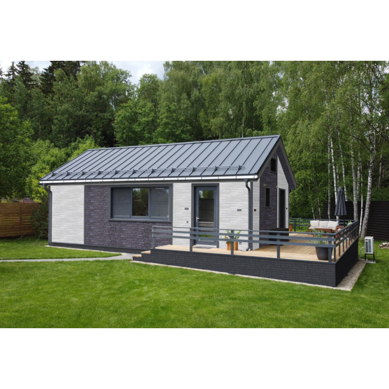 Панель изготовлена из поливинилхлорида и произведена методом термоформовки. Такая технология позволяет достигнуть потрясающей геометрической точности панелей, невидимость стыков и отсутствие зазоров. Материал устойчив к грибку, плесени и гниению. Благодаря уникальной системе SunProof EXTRA, панели невосприимчивы к УФ-излучению, что обеспечивает стабильность цвета и отсутствие обесцвечивания в течении 50 лет. В конструкции панели предусмотрен специальный замок «Антисмерч», который надежно скрепляет панели между собой, придает дополнительную прочность фасаду, и исключает его «шуршание» при высоких ветровых нагрузках.