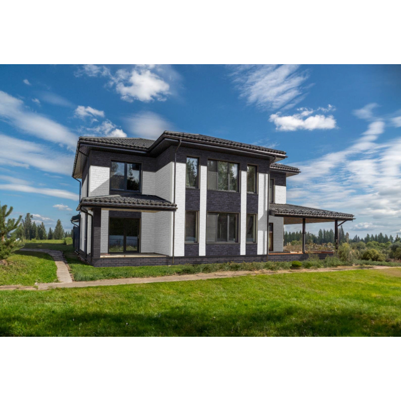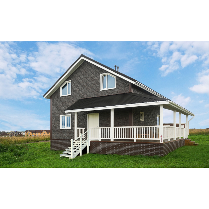 Фасадные панели могут использоваться как для оформления фасада целиком, так и для облицовки фундамента, выделения отдельных деталей.