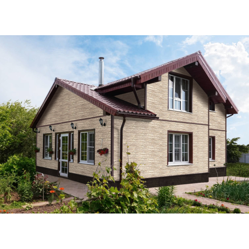 Фасадные панели могут использоваться как для оформления фасада целиком, так и для облицовки фундамента, выделения отдельных деталей.