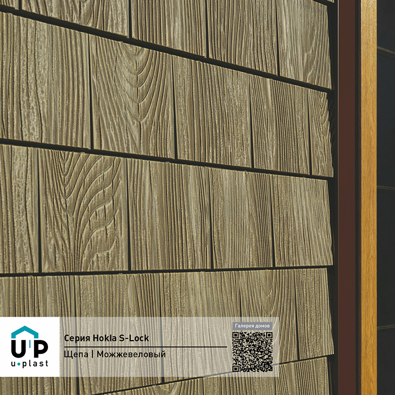 Фасадная панель Ю-Пласт Hokla S-Lock Щепа Можжевеловый — оптимальное сочетание надежности и эстетичного вида. Материал точно имитирует вид натурального дерева: дом будет выглядеть респектабельно, при этом отделка не вызовет сложностей и прослужит долго без особых усилий с вашей стороны.
