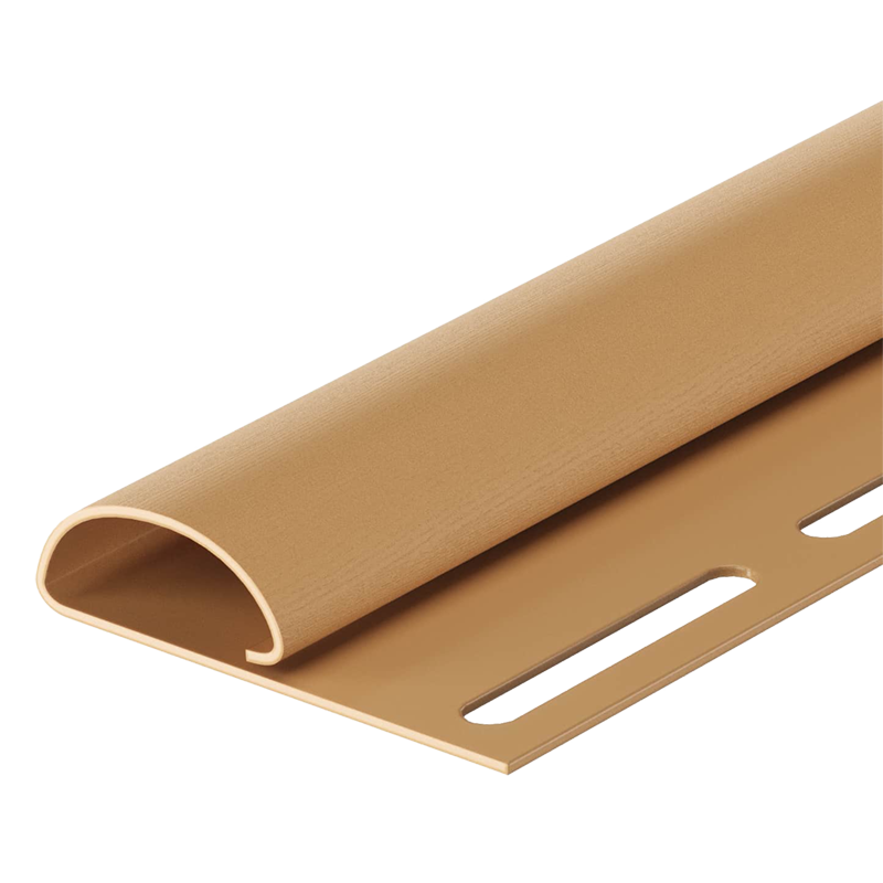 Виниловый финишный профиль универсальный от Docke длиной 3 м, цвет Карамель. Применяется для крепления обрезанного по горизонтали края панелей сайдинга, может использоваться при закреплении верхнего ряда панелей, отделке оконных проемов, монтаже ветровой доски и т. п.
