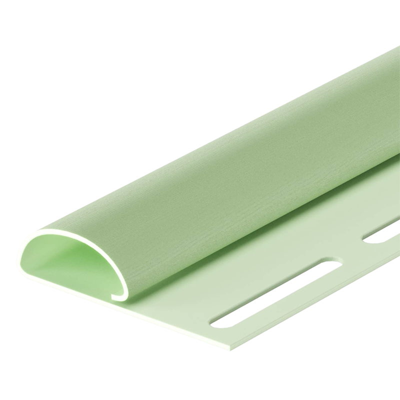 Виниловый финишный профиль универсальный от Docke длиной 3 м, цвет Киви. Применяется для крепления обрезанного по горизонтали края панелей сайдинга, может использоваться при закреплении верхнего ряда панелей, отделке оконных проемов, монтаже ветровой доски и т. п.