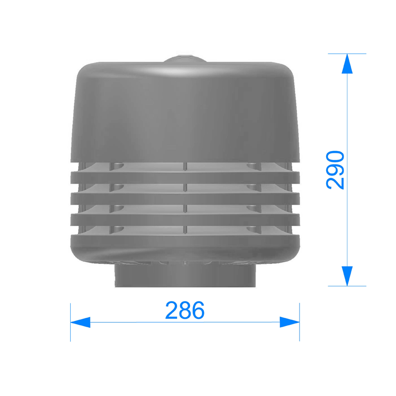 Колпак для вентиляционного выхода Ø125 мм. Устанавливается на трубу вентиляционного выхода, усиливает тягу в трубе, защищает от проникновения мусора и осадков в систему вентиляции. Температурный режим эксплуатации -40°…+80°C. Изготовлен из стойкого к УФ-излучению полипропилена. Крепеж в цвет изделия в комплекте.