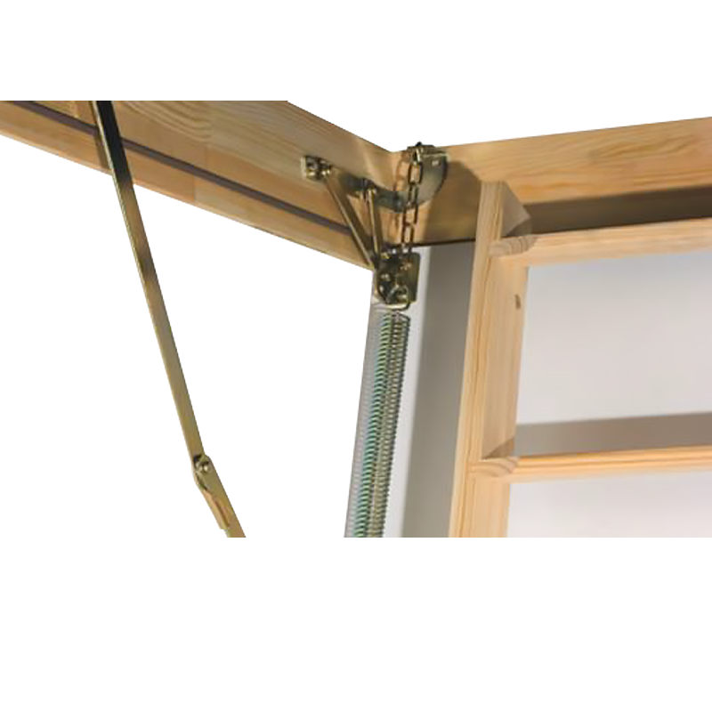 Комплектация и параметры лестниц LWK полностью соответствуют характеристикам лестниц Fakro LWK Plus с двумя отличиями: способ крепления лестничного марша и цвет поручня (черный). Лестничный марш в модели LWK крепится к крышке люка, а не к коробу. Такая конструкция гарантирует дополнительную устойчивость. Петли-шарниры позволяют регулировать положение марша относительно крышки люка при подрезке нижнего сегмента (не более 40 мм!)