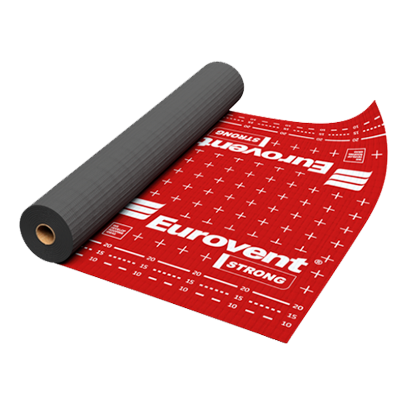 Четырехслойная кровельная мембрана Eurovent STRONG используется как гидро-ветрозащита на скатных, изолированных и вентилируемых кровлях, в т.ч. со сплошной обрешеткой. Водонепроницаемая, устойчива к УФ лучам, обладает высокой паропроницаемостью. Армирована сеткой из полиэтилена. Обладает высокой прочностью и имеет более высокое сопротивление разрыву.