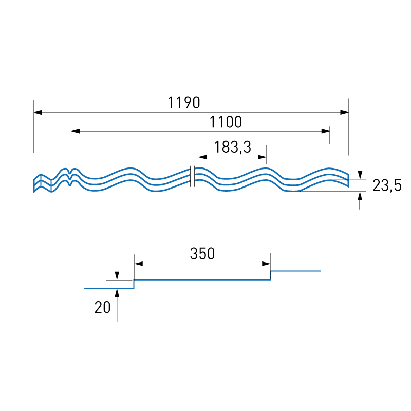 Покрытие — Satin® цвета RR32. Формат поставки: в м², длины под расчет. Длина — 500 ÷ 8000 мм. Профиль — Classic высотой 23,5 мм.