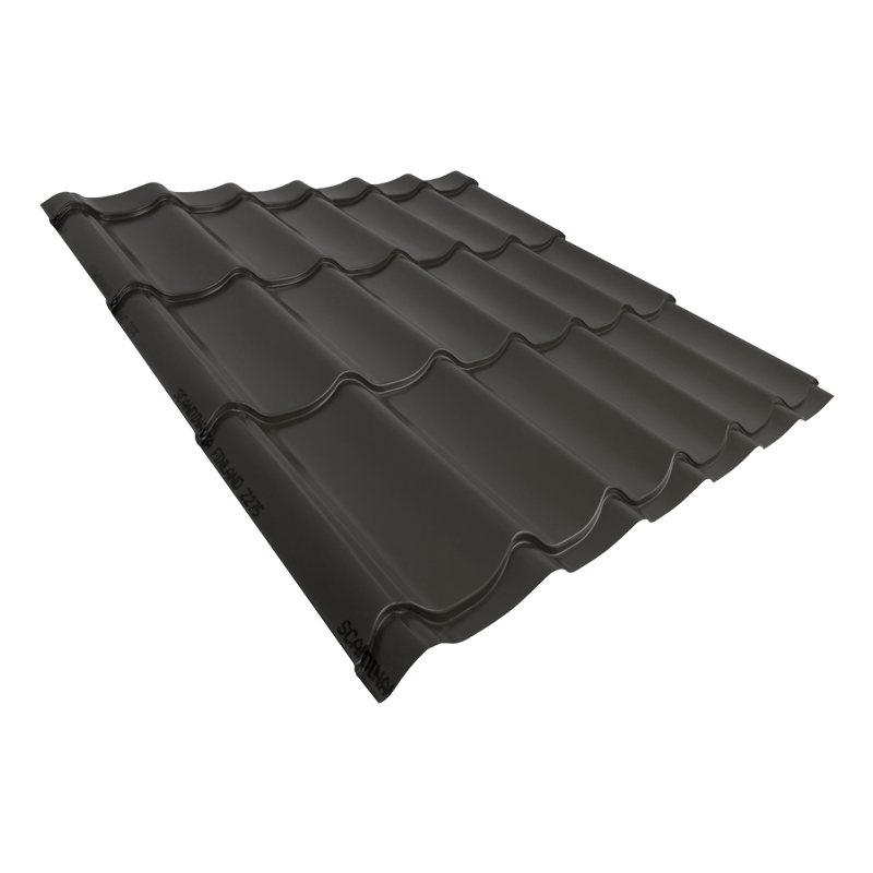 Металлочерепица Scandinavia (Скандинавия) с глянцевым покрытием Полиэстер, толщиной стали 0,5 мм. Производится из оцинкованной стали оптимальной толщины, достаточной для качественного профилирования. Слой цинка обеспечивает надежную защиту металлочерепицы от образования ржавчины и коррозии. Экономичное и универсальное покрытие Полиэстер толщиной 25 мкм устойчиво к перепадам температур и подходит для любых климатических зон. Обладает хорошей стойкостью цвета. Хорошо зарекомендовало себя благодаря своим характеристикам и невысокой стоимости. Популярный профиль в форме бегущей волны является классикой и идеально гармонирует с любым архитектурным стилем дома. Металлическая черепица Scandinavia выпускается в нескольких вариантах, с длиной листа 470, 1170, 2220 и 3620 мм. Удобные размеры позволяют использовать металлочерепицу на кровлях любой площади и конфигурации, сокращают количество обрезков кровельного материала, а также ускоряют и упрощают монтаж. Металлочерепица Скандинавия представлена в наиболее распространенных цветах, используемые для кровли. Оттенки из палитры RR отличаются природным скандинавским спокойствием. Коричневая крыша — классическое и универсальное цветовое решение. Кровля в цвете RR32 Темно-коричневый сочетается со всеми пастельными оттенками фасадных материалов. Такой цвет кровли лучше всего подойдет консерваторам, создаст ощущение спокойствия и защищенности. Купить металлочерепицу Скандинавия 0,5 мм Полиэстер в цвете RR32 с длиной листа 470 мм по низкой цене вы можете в нашем интернет-магазине Удачная покупка. Наши менеджеры произведут расчет кровельного материала и необходимых комплектующих.