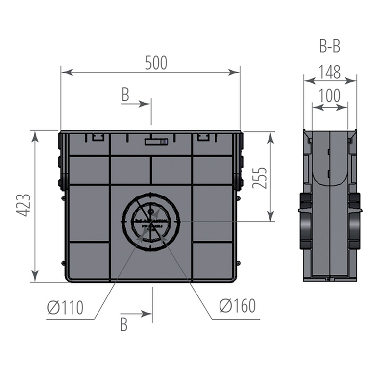 Пластиковый пескоуловитель DN100 для систем водоотведения частных домовладений, пешеходных или проезжих участков (класс нагрузки до C250 — до 25 т). Защищает ливневую канализацию от засорения мусором (листьями, песком). Может использоваться в качестве «узла развязки» системы водоотвода — помимо мест подключения водоотводных лотков с одной или двух сторон имеет места для бокового подключения труб D110 ÷ D160. К пескоуловителю можно подключать лотки других производителей DN100 высотой 55 ÷ 200 мм. Комплектуется корзиной для сбора мусора. Водоприемная решетка приобретается отдельно!