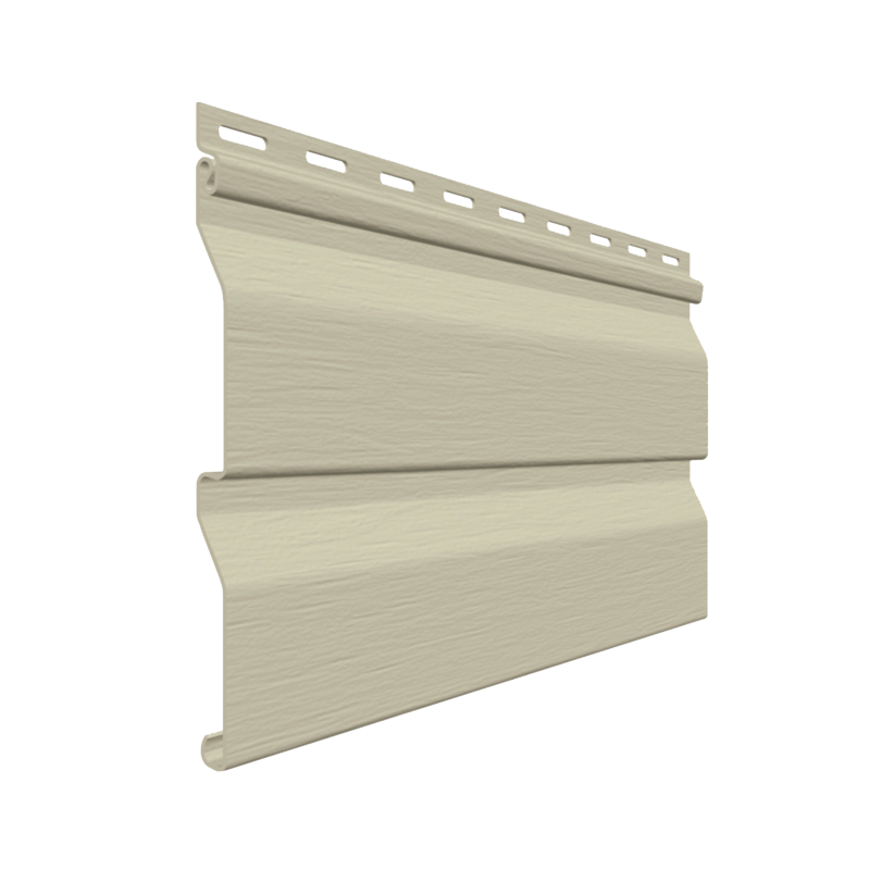Сайдинг серии XL от Гранд Лайн c увеличенной высотой панели. Полная высота — 259 мм, полезная — 224 мм. Классический двухпереломный сайдинг в оригинальном цвете Слоновая кость с ненавязчивым тиснением поверхности под рисунок натурального дерева. Длина панели 3,6 м. в сочетании с шириной сайдинга позволяет сэкономить на аксессуарах для монтажа за счет меньшего количества стыков и ускорить выполнение работ.