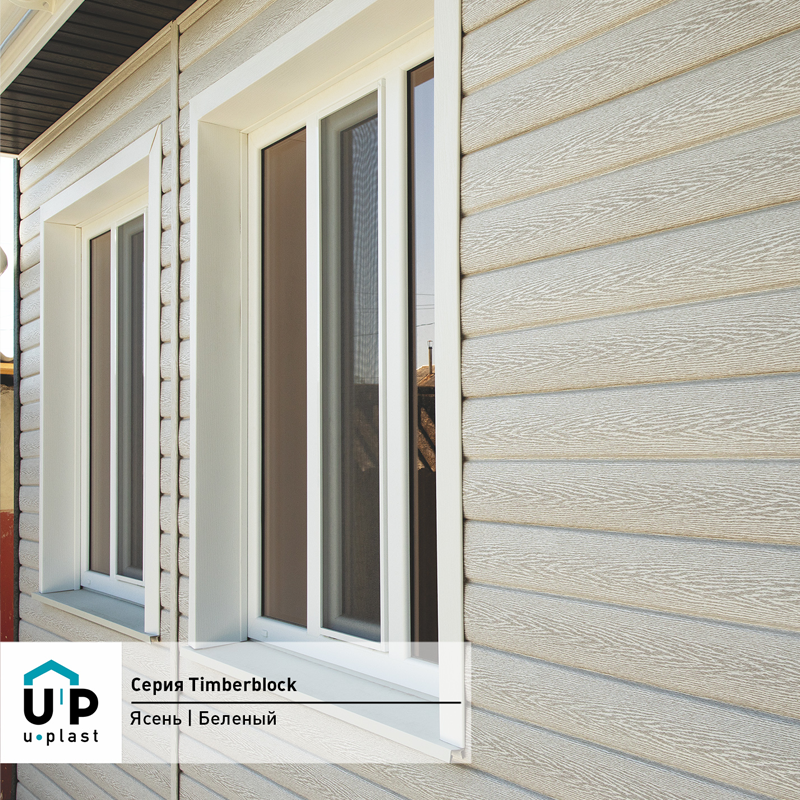 При производстве сайдинга и комплектующих Timberblock ЯСЕНЬ (профиль Блокхаус) используются уникальные технологии нанесения краски. Внешняя поверхность цвета Беленый получается как у натурального дерева.