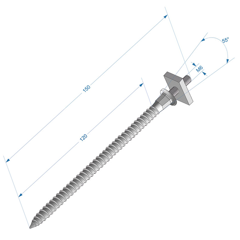 Шпилька хомута универсальная с гайкой для крепления хомута водосточной системы Docke. Длина 150 мм, самонарезающая часть 120 мм.