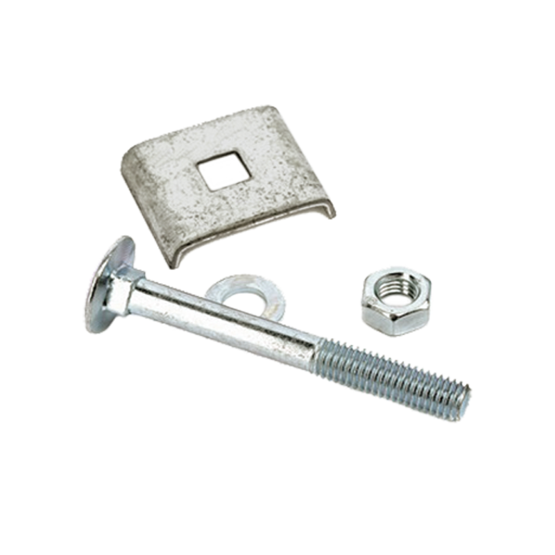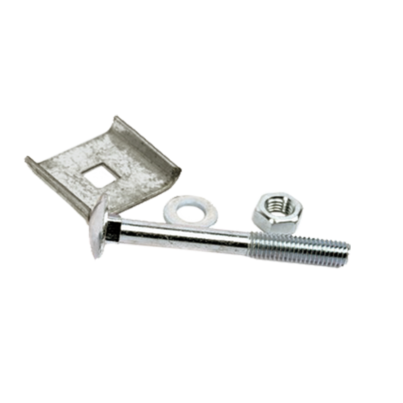 Универсальная оцинкованная скоба с отверстием, один из вариантов крепления сварной сетки к столбу или к другой опоре. Комплектуется болтом и гайкой M6. Загнутые края позволяют надежно зафиксировать сетку к каркасу ограждения. Применяется при монтаже со сверлением опорной конструкции.