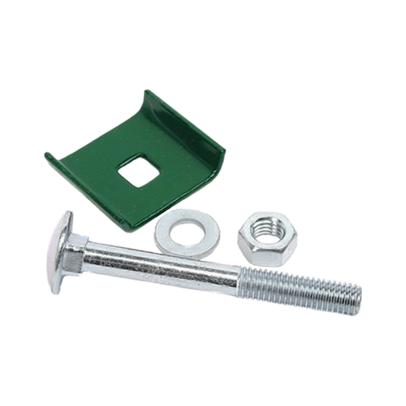 Универсальная оцинкованная скоба с отверстием, один из вариантов крепления сварной сетки к столбу или к другой опоре. Комплектуется болтом и гайкой M6. Загнутые края позволяют надежно зафиксировать сетку к каркасу ограждения. Применяется при монтаже со сверлением опорной конструкции. Скоба окрашена полимерно-порошковым способом в цвет RAL6005 Зеленый мох.