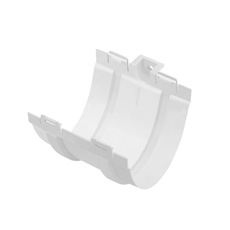 Соединитель желоба ПВХ D115 мм белый серии Стандарт от Альта-Профиль. Используется для соединения водосточных желобов в единую систему.
