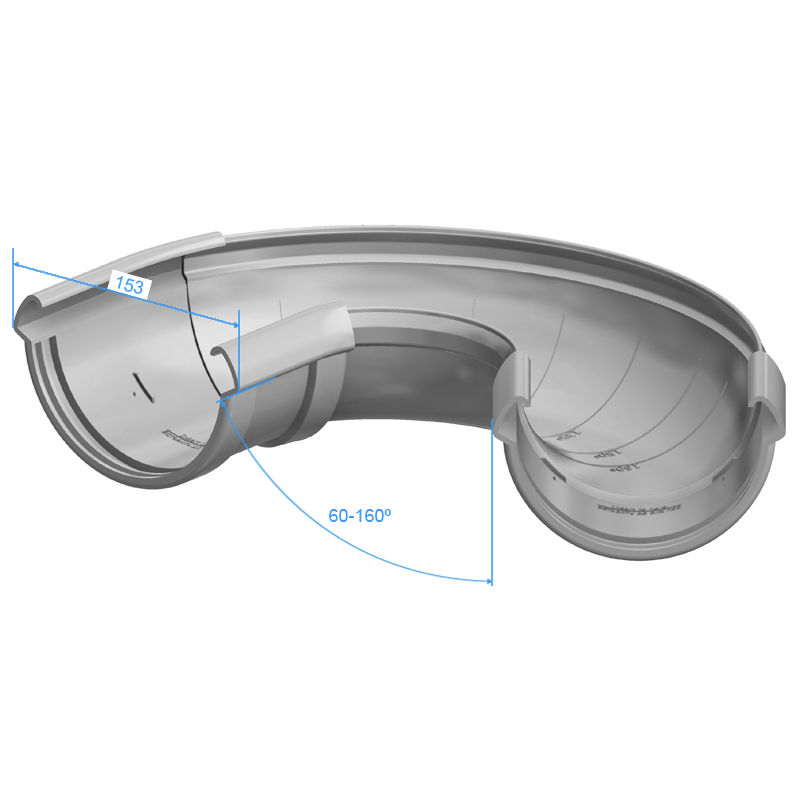 Угол желоба регулируемый 60° – 160° Docke LUX D141 Шоколад RAL8019