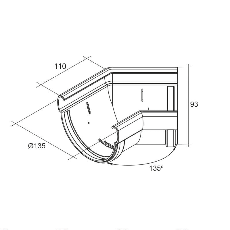 Угол желоба универсальный 135° Grand Line ПВХ Дизайн D135 Черный RAL9005