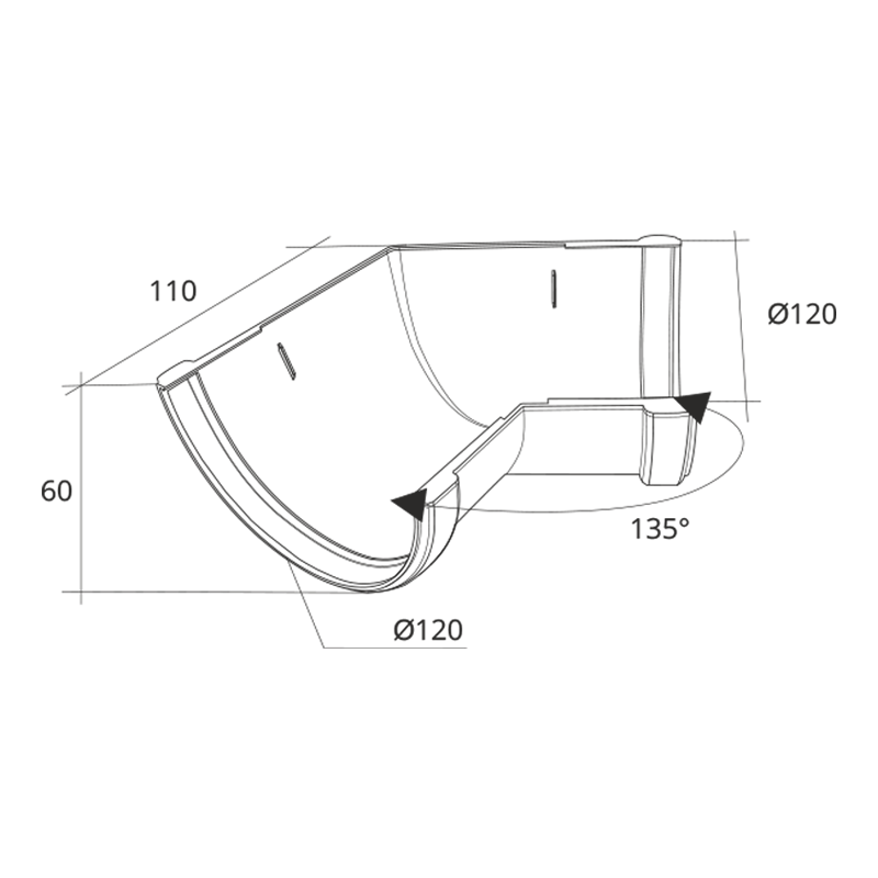 Угол желоба универсальный 135° Grand Line ПВХ Классика D120 Графит RAL7024