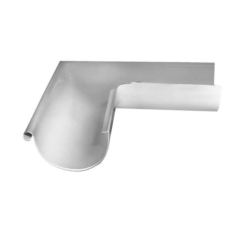 Угол желоба внешний D150 мм 90° белый RAL9003 с покрытием Granite Double от Гранд Лайн. Предназначен для соединения водосточных желобов под углом 90 градусов, для смены направления движения воды в стоке. Обеспечивает непрерывность линии водостока. Устанавливается на наружных/выступающих углах здания. Металлический водосток круглого сечения D150/100 с покрытием Granite Double от Гранд Лайн. Водосточная система Гранд Лайн D150/100 обладает большой пропускной способностью и подходит для кровель большой площади. Достаточно одной воронки на 15 п.м. карниза, что позволяет существенно сократить расходы на трубы и колена. Водосточная система изготовлена из холоднокатаной горячеоцинкованной стали толщиной от 0,5 мм и произведена по ведущим европейским технологиям. Все элементы водостока имеют покрытие на основе полиуретана с внешней и внутренней стороны, что значительно повышает долговечность системы. Покрытие Granite отличается повышенной стойкостью к УФ-лучам, агрессивным химическим веществам, механическим повреждениям и коррозии, превосходит по своим параметрам покрытия из полиэстера и пластизола. Водосток обладает высокой цветостойкостью, не выгорает. Устойчив к большим температурным перепадам ( -60 до +120°C). Водосток Гранд Лайн служит для организации стока осадков с поверхности кровли и отвода их на грунт или систему ливневой канализации. При организованном стоке воды сохраняется привлекательный вид фасада, а фундамент защищен от преждевременного разрушения. Купить угол желоба внешний D150 мм 90° белый RAL9003 с покрытием Granite Double от производителя Гранд Лайн по выгодной цене вы можете в нашем интернет-магазине Удачная покупка. Наши менеджеры помогут с выбором и рассчитают необходимое количество элементов водостока.