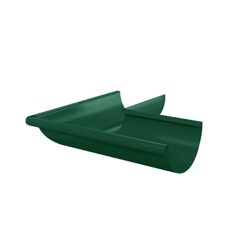 Угол желоба наружный D125 мм 90° зеленый RAL6005 с покрытием Пластизол серии МП Престиж от Металл Профиль. Предназначен для соединения водосточных желобов под углом 90 градусов, для смены направления движения воды в стоке. Обеспечивает непрерывность линии водостока. Устанавливается на наружных/выступающих углах здания. Металлический водосток круглого сечения с двухсторонним покрытием Пластизол (PVC) серии МП Престиж от Металл Профиль. ОСОБЕННОСТИ: – Элементы водостока изготовлены из оцинкованной стали толщиной от 0,5 мм, что обеспечивает высокую жесткость водосточной системы – Выдерживает значительные нагрузки (лёд, снег, мелкие животные) – Многоуровневая защита стали от ржавчины и коррозии: грунт, цинк, пассивирующий слой, двухстороннее гладкое глянцевое покрытие Пластизол (PVC) толщиной 100 мкм – Стойкость к большим температурным перепадам (водосток не трескается в мороз и не деформируется в жару) – Стойкость к химическим веществам – Круглое сечение (обладает наименьшим сопротивлением потоку воды) – Размерность системы D125/100 отличается хорошей пропускной способностью и успешно справляется с нагрузками – Высокая прочность комплектующих элементов и крепежа – Широкая палитра цветов – Срок службы до 50 лет. Водосточная система МП Престиж D125/100 — оптимальный вариант для устройства водоотвода с крыши загородного дома. Водосток служит для защиты фасада и фундамента строения от осадков. Обеспечивает отвод воды, предотвращая разрушение фундамента, подтопление подвалов. Продлевает срок службы фасадных материалов. А также является средством сбора дождевой воды для последующего ее использования. Купить угол желоба наружный D125 мм 90° зеленый RAL6005 с покрытием Пластизол от производителя Металл Профиль по доступной цене вы можете в нашем интернет-магазине Удачная покупка. Наши менеджеры помогут с выбором и рассчитают необходимое количество элементов водостока.