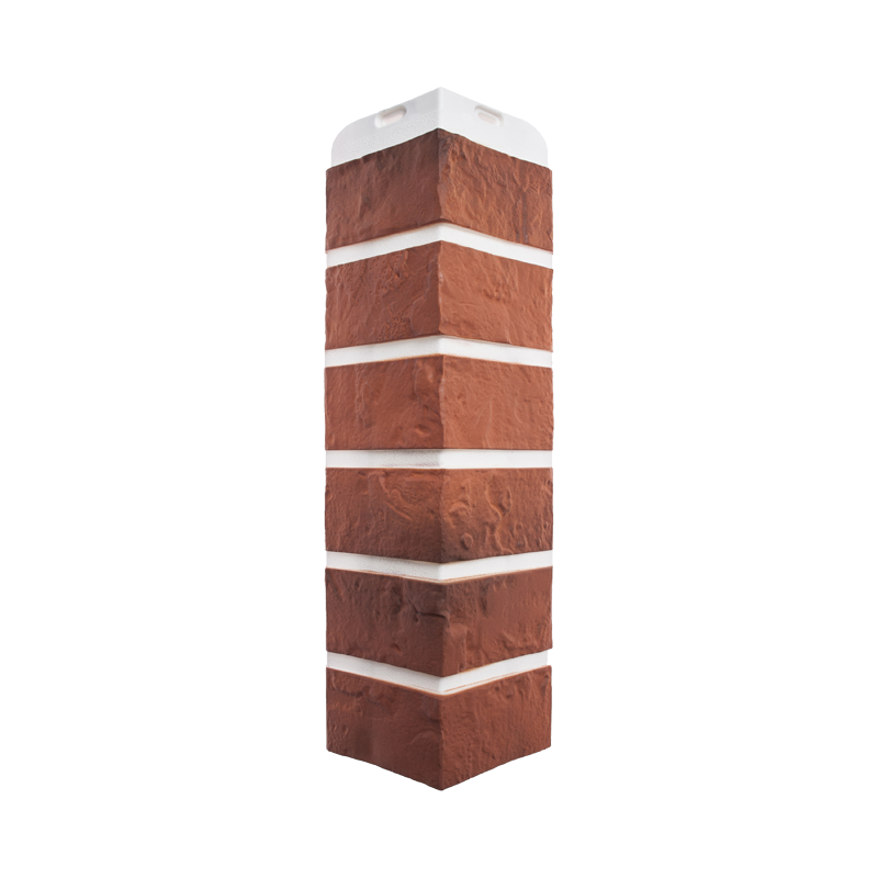 Внешний угол для фасадной панели под фактурный кирпич с контрастными швами из коллекции Рижский кирпич от Альта-Профиль длиной 439 мм. Предназначен для декоративного оформления и защиты наружных углов фасада. Скрывает и укрепляет места угловых стыков фасадных панелей. Углы для фасадных панелей по структуре и цвету соответствуют панелям коллекции Рижский кирпич и производятся из идентичного материала (полипропилен). Материал устойчив к грибку, плесени и коррозии. Многослойное окрашивание надежно защищает от УФ-лучей, обеспечивая сохранность цвета долгие годы.