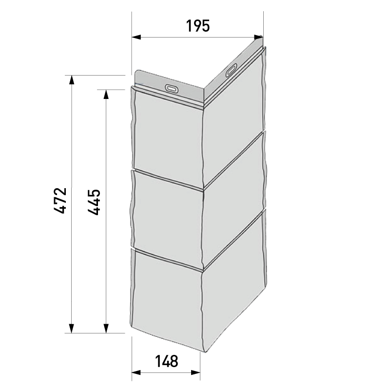 Внешний угол для фасадной панели под дикий скальный тесаный камень Docke FELS длиной 425 мм. Предназначен для оформления наружных углов и отдельных архитектурных элементов фасада. Скрывает места угловых стыков фасадных панелей, защищает от проникновения влаги. Производятся углы из полипропилена и идентичны по структуре и цвету фасадным панелям Docke FELS.