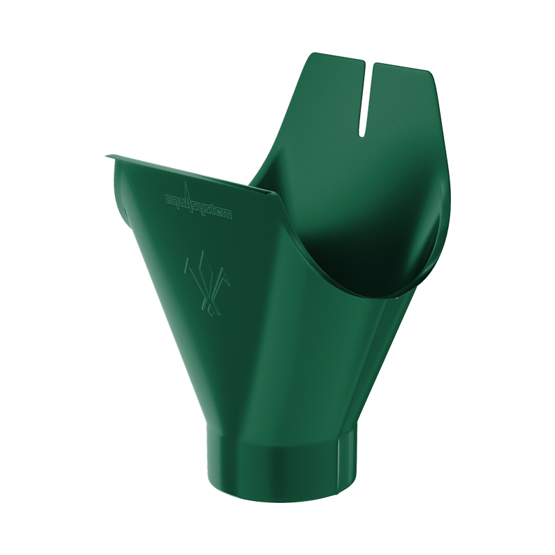 Воронка выпускная D125/90 мм RAL6005 Зеленый мох с покрытием Полиуретан (PUR) от производителя Аквасистем. Элемент водосточной системы, устанавливается в водосточный желоб и служит для отвода воды из желобов в водосточную трубу.