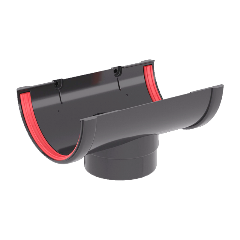 Прекрасная водосточная система серого цвета. В воронке уплотнители красные, видимо, чтобы не потерялись. Не протекает. Рекомендую.