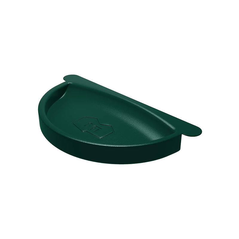 Заглушка желоба D150 мм зеленая RAL6005 с покрытием Пластизол серии МП Престиж от Металл Профиль. Предназначена для закрытия торцов водосточных желобов.